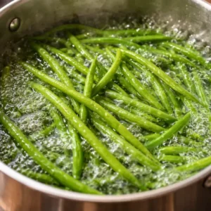 Don’t skip the blanching. I know it feels like an extra step. It isn’t optional. Raw green beans go rubbery and uneven in the oven; blanched beans stay vibrant and just-tender throughout. Three to four minutes in boiling salted water, then straight into ice water. Done.